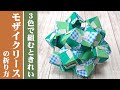 | タイトル | 【くす玉 / ユニット折り紙】3色組みがきれい! モザイクリース の折り図・解説 【万華鏡 / 30枚組 / オリジナル】 |