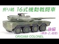 | タイトル | 折り紙戦車/装甲車の作り方_陸上自衛隊16式機動戦闘車(後編)/ Origami wheeled tank tutorial, JGSDF Type 16 MCV, Japanese, part 2 |