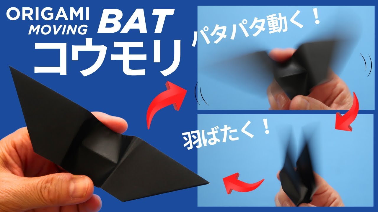 | 説明文 | 遊べる折り紙で『 動くコウモリ 』の簡単な折り方です。面白い動きで、バタバタ羽ばたくこうもりの作り方をゆっくりご紹介します。ネコも思わずびっくりするくらい動きます(笑)季節の飾りや紙おもちゃをたくさん... |