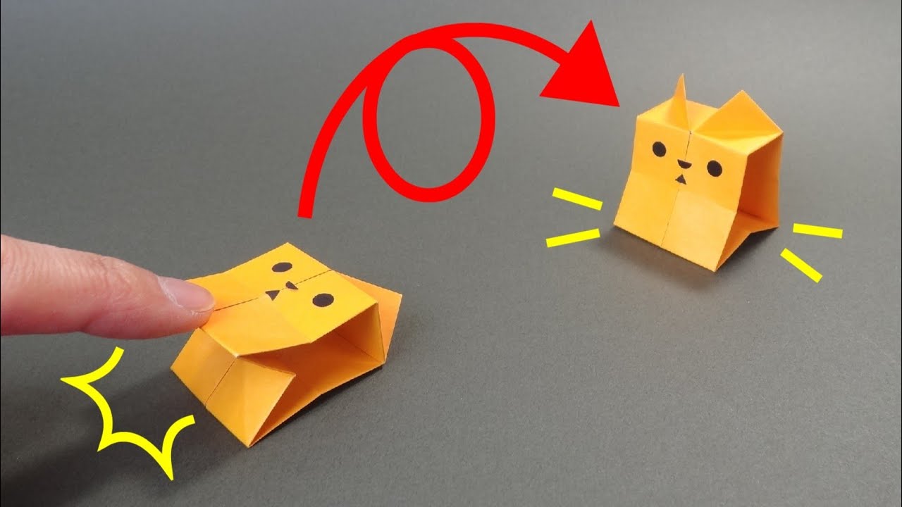| 説明文 | くるんと回って立ち上がる折り紙の猫。子どもにウケる動かして遊べる面白おりがみ作品です。回転しすぎる場合は底の部分をしっかり折り、はじく強さを弱めにすると立ちやすいです。折り紙のサイズは15㎝。説明が早... |