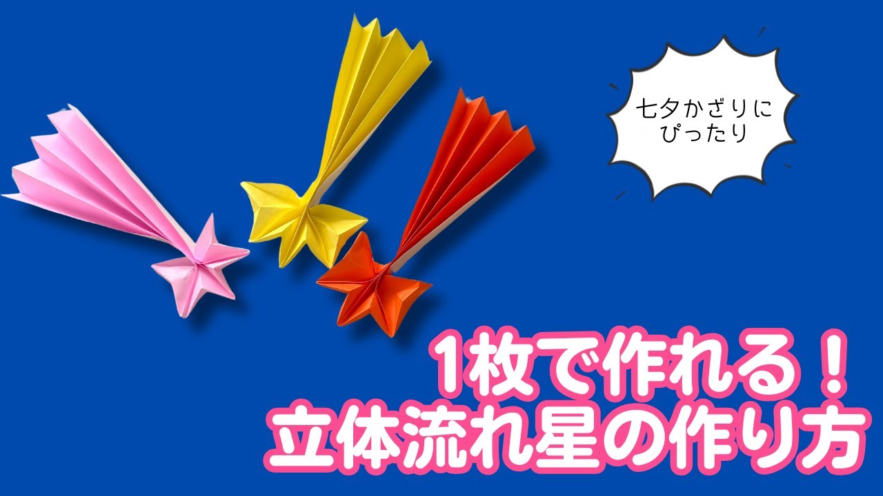 | タイトル | 【折り紙1枚で】七夕にもぴったり!立体的な流れ星の作り方【音声解説あり】Make a 3D Shooting Star with Just One Sheet of Paper! |