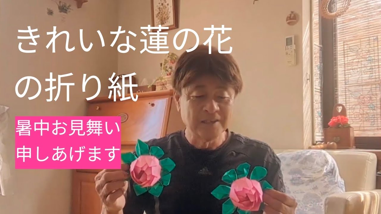 蓮の花の折り紙をありがとう!暑中お見舞い申しあげます – 元気大好きおっしーチャンネル