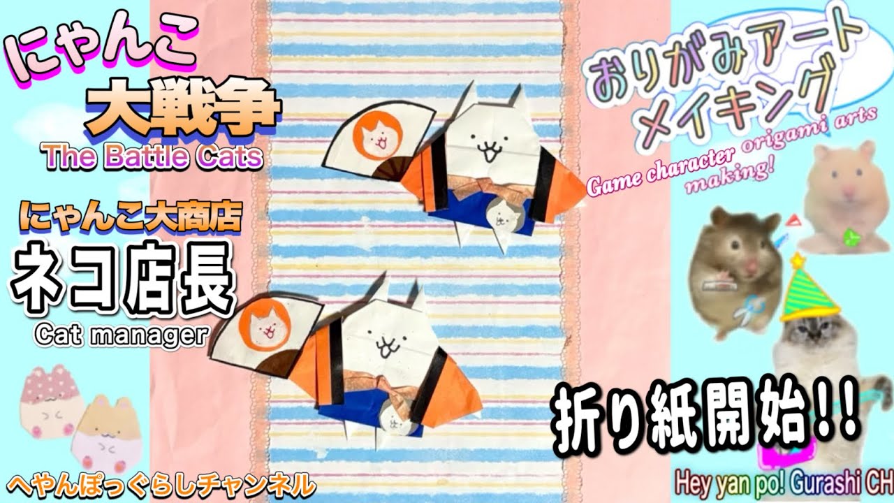 【にゃんこ大戦争 折り紙】ネコ店長の折り紙アート作り方/How to make The battle cats origami art ✨️ – へやんぽっぐらしチャンネル【人気キャラ折り紙(Popular character origami)】