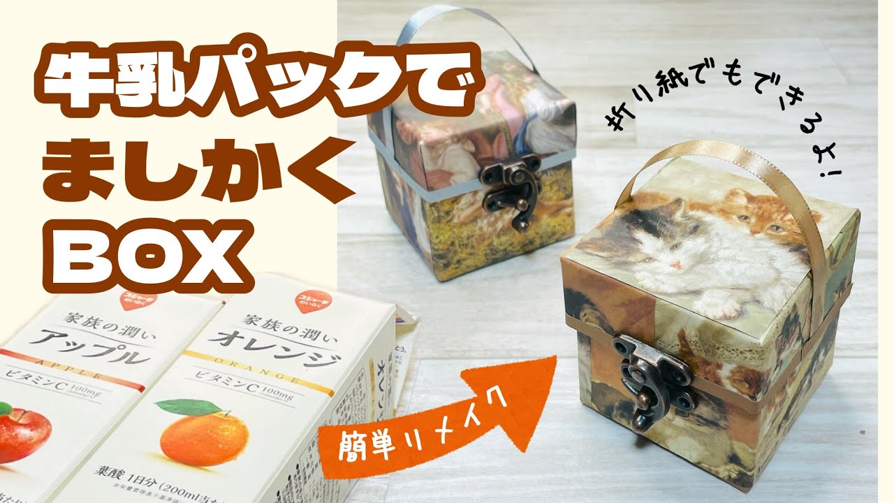 | タイトル | 【簡単なのにかわいすぎ!】牛乳パックをかわいい真四角ボックスにリメイク♪ 紙パックリメイク♪How to make a cute box using a milk carton |