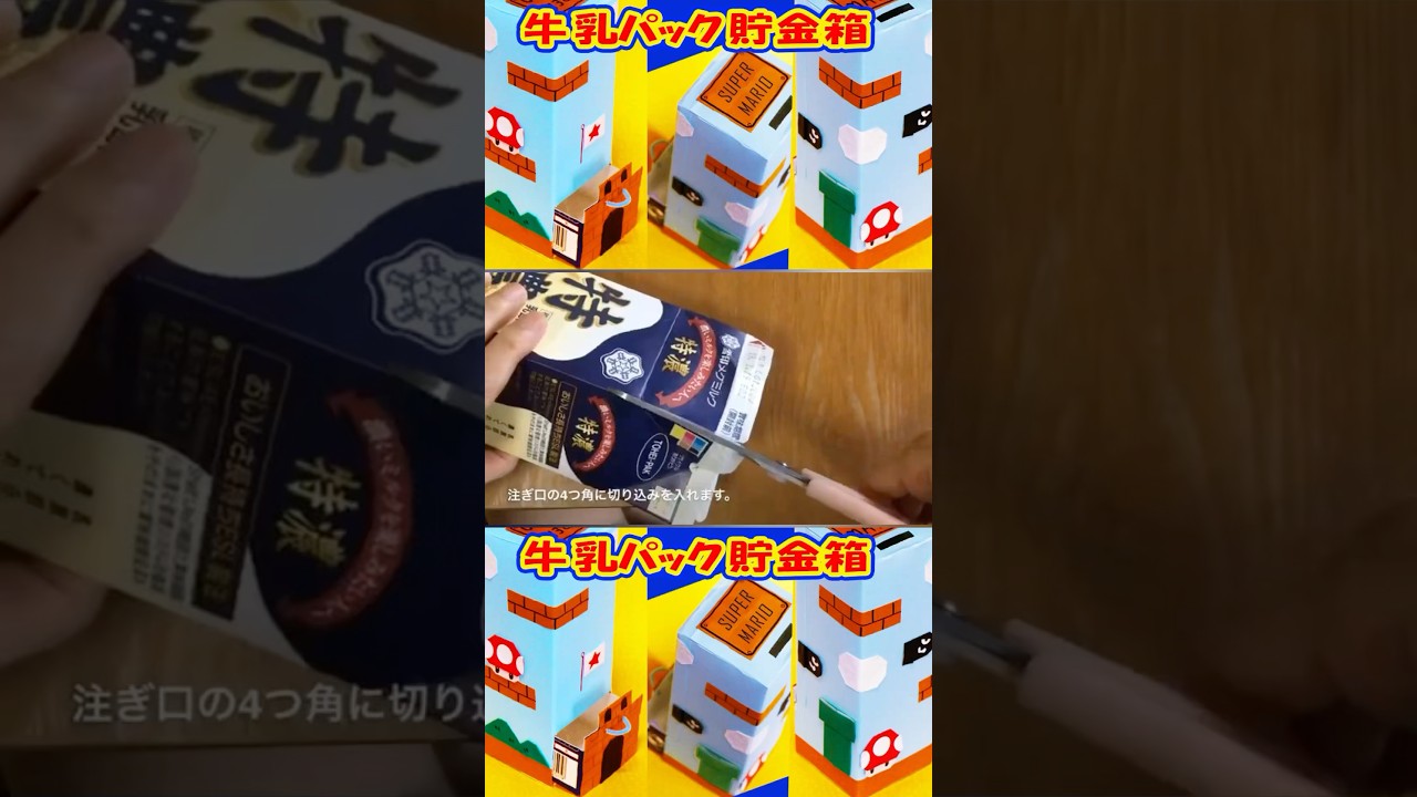 タイトル牛乳パックでマリオの貯金箱をつくるよ。#Shorts #折り紙 #おもちゃ箱 #omotyabako #origami