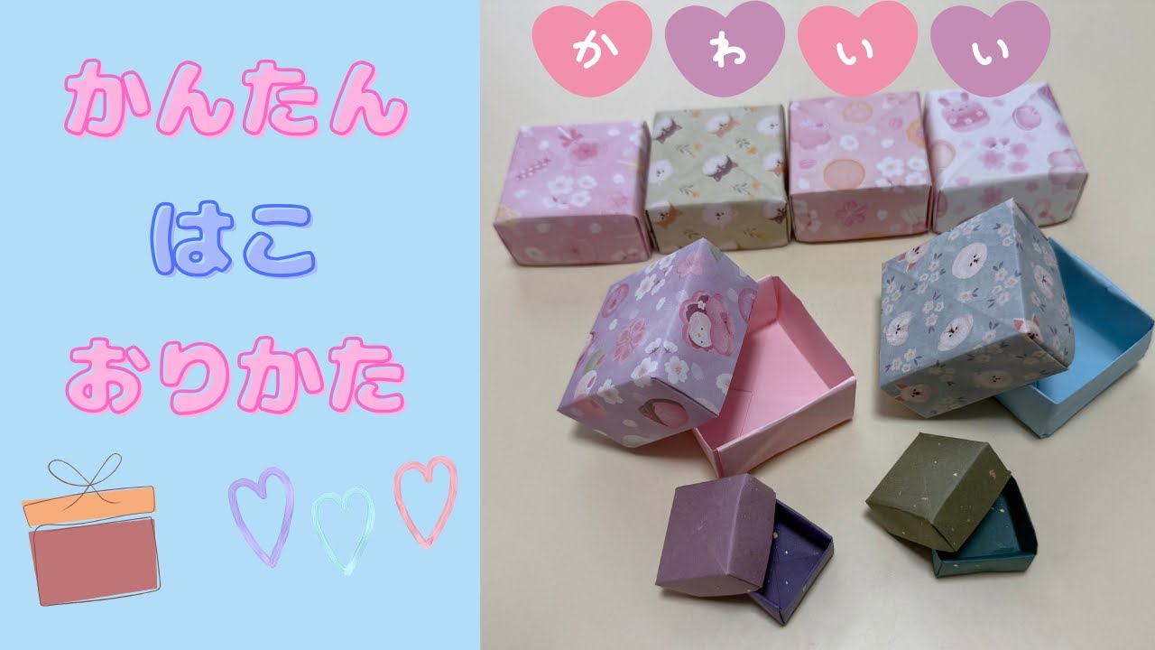 | 説明文 | おしゃれでかわいい折り紙の箱を簡単に作れる動画です。初心者の方でも迷わず挑戦できるよう、手順をわかりやすく丁寧に解説しています。小物入れやギフトボックスとしても大活躍!使う材料は折り紙2枚。ぜひチャレ... |