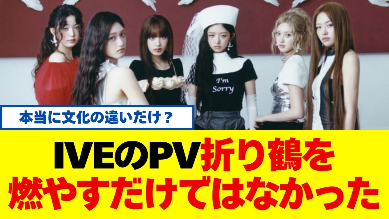 | 説明文 | 韓国グループIVEが8月8日に発表したPVで、折り紙の鶴を燃やすシーンや、日本人メンバーにI’m sorryと入れたTシャツを着せるなどで炎上。「配慮がなさすぎる」IVE 新曲MVの“折り鶴炎上”演出... |