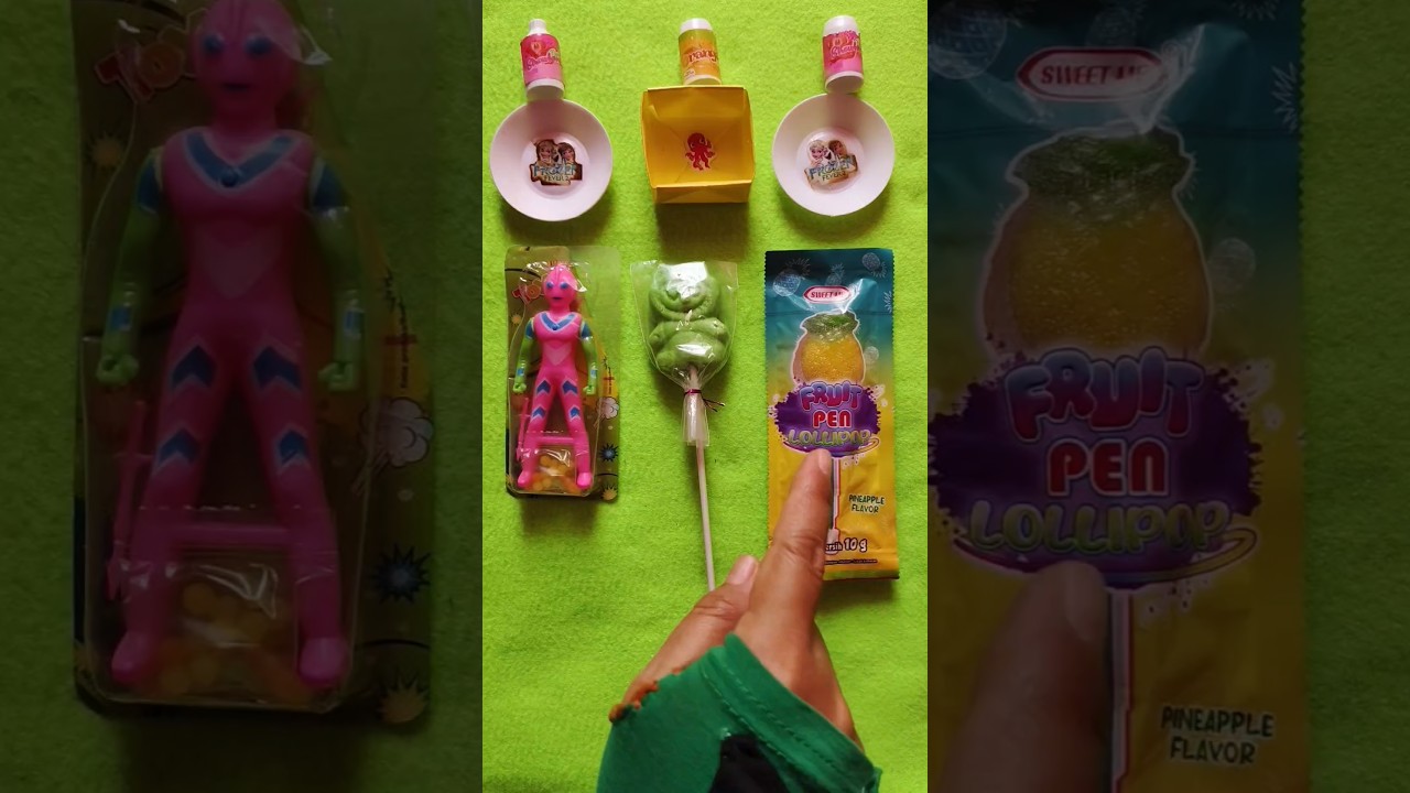 Green labubu and pineapple lollipops vs pink ultraman on origami and plate#shorts – Walking emarantau