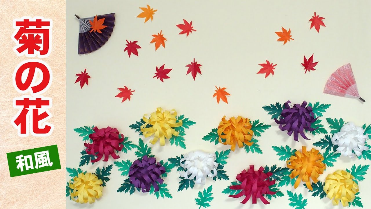 | タイトル | 【秋の壁面飾り】折り紙で簡単クラフト 菊の花・もみじ・扇の秋工作 |