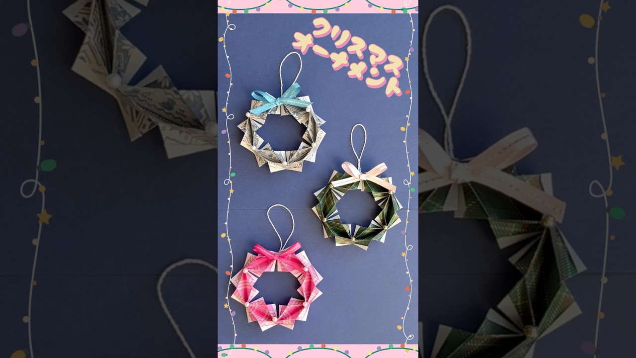 説明文こんにちは。みっつのおりがみチャンネルへようこそ♪【クリスマスオーナメント】の作り方です。可愛いオシャレなクリスマス飾りです。クリスマスの飾りにいかがでしょうか?色んな色や柄で作ってみて下さいね☆簡単...