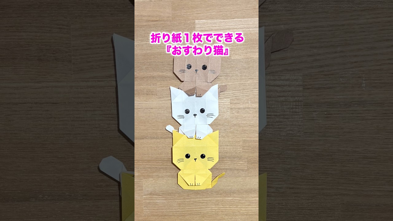 | タイトル | 【折り紙1枚でできる】ちょこんとかわいい『 おすわり猫』 ※詳しい作り方はYouTube本編からご覧ください♪ #折り紙 #ねこ #猫 #動物 #origami #cat #shorts |