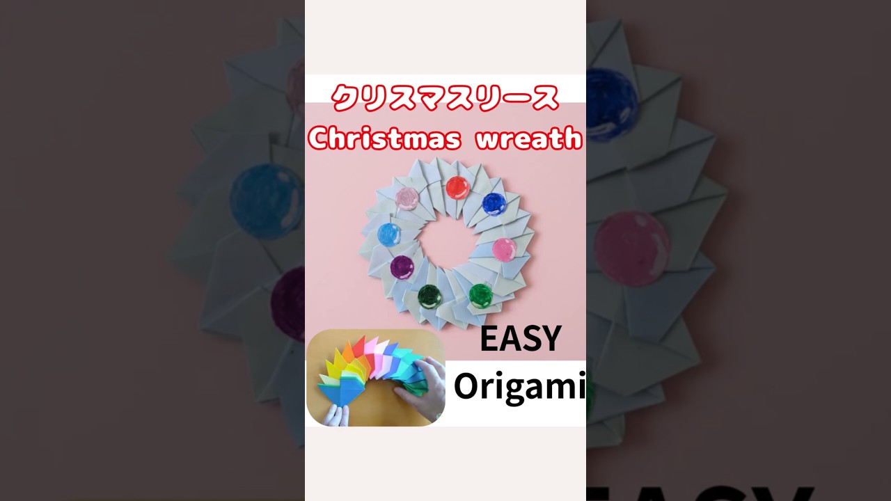 タイトル【のびる!】折り紙でかんたんクリスマスリースの折り方【かんたん】