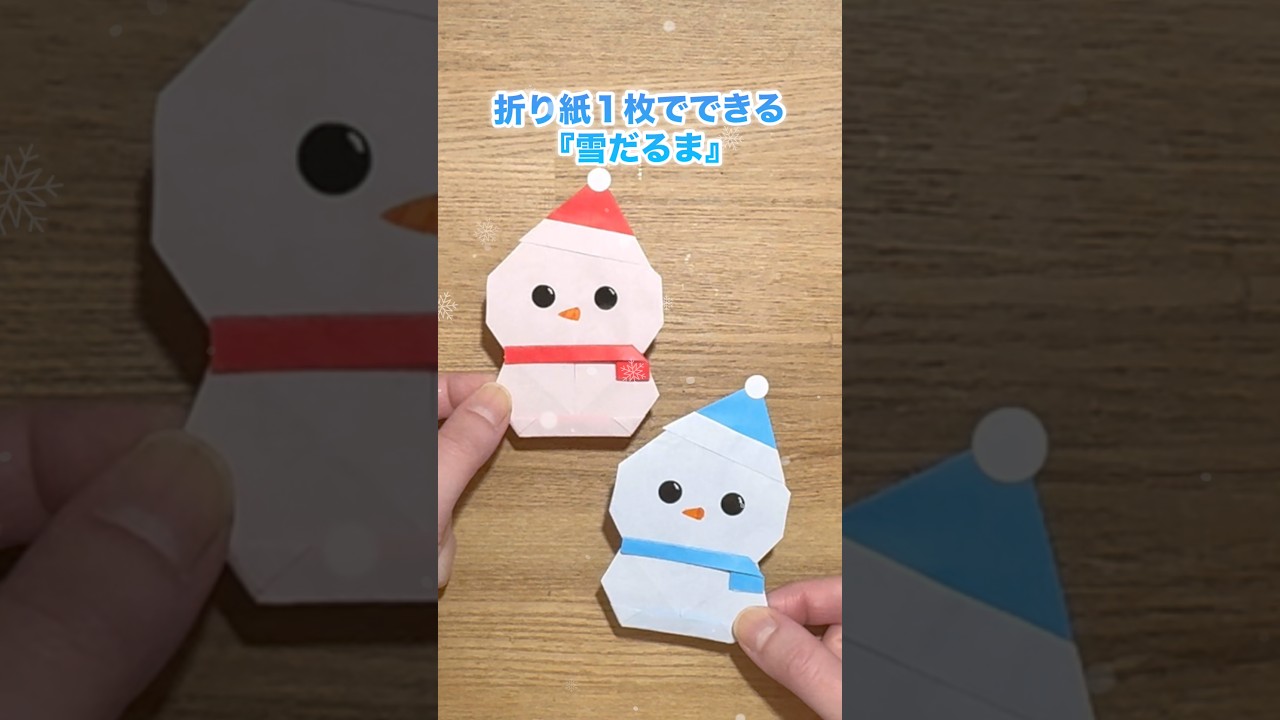 タイトル【折り紙1枚でできる】帽子をかぶった『雪だるま』 ※詳しい作り方はYouTube本編からご覧ください♪ #折り紙 #雪だるま #クリスマス #冬 #origami #christmas #shorts