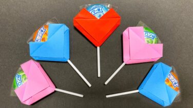 バレンタイン 【折り紙】ハートキャンディカバー♡棒付きキャンディがかわいく変身!#shorts – おりがみんチャンネル