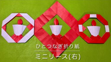 【ひとつなぎ折り紙】 ミニリース クリスマス キャンドル リボン Christmas origami 1枚 – sun 0938